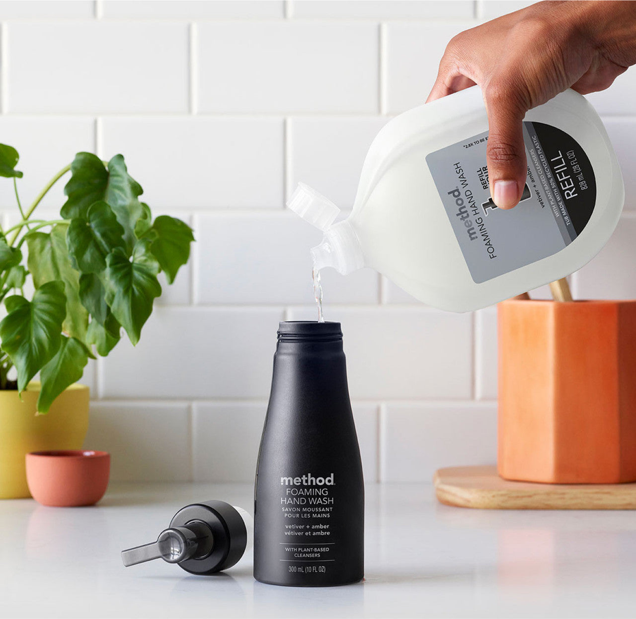 • Sleek. counter-worthy bottles designed to be refilled + flatter your fixtures for years.